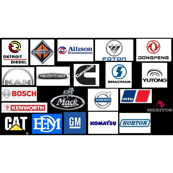 MTU , MAN , MERCEDES BENZ , FOTON , INTERNATIONAL , FREIGHTLINER , KENWORTH , ALLIANCE , CUMMINS , CATERPILLAR , KOMATSU , BOSCH , EMD, GENERAL MOTORS , DETROIT DIESEL , ALLISON TRANSMISSION , MERITOR , GARRET , VOLVO , MACK , HORTON , YUTONG , SHACMAN , DONGFENG.